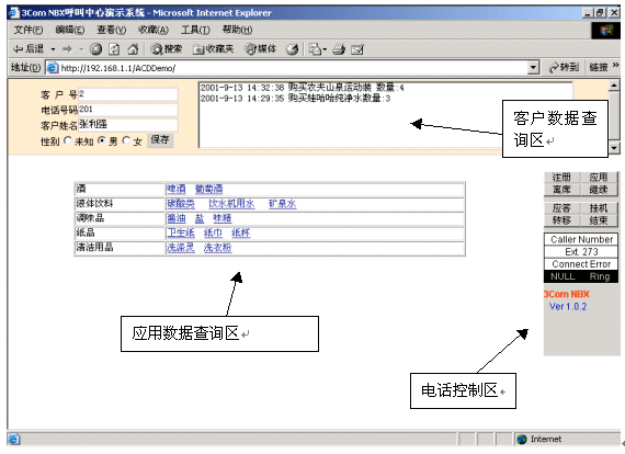 "無聲"一直是企業(yè)電子商務(wù)的最大遺憾,因?yàn)?無聲",許多消費(fèi)者卻步了。怎樣把語音和Web在網(wǎng)絡(luò)上結(jié)合起來?NBX呼叫中心的語音數(shù)據(jù)兩網(wǎng)合一的結(jié)構(gòu),可以方便地讓W(xué)EB訪問用戶與呼叫中心坐席進(jìn)行語音交流。消費(fèi)者在使用Internet瀏覽時,點(diǎn)擊呼叫按鈕,就可以通過麥克風(fēng)與客服代表通話。并且網(wǎng)上來電與普通來電一樣,經(jīng)過交換及排隊(duì)處理,同樣支持來電資料彈出。對客戶來說,只需要一臺接入Internet的多媒體電腦和免費(fèi)的客戶端軟件就可實(shí)現(xiàn)Web瀏覽和交談功能。這個功能不僅可以讓客戶獲得更好的售后服務(wù),在售前服務(wù)中也可發(fā)揮巨大效用。消費(fèi)者在購買之前必須對產(chǎn)品有充分了解,在網(wǎng)站瀏覽中通過與客戶代表的交流增進(jìn)產(chǎn)品了解,刺激其購買欲望。