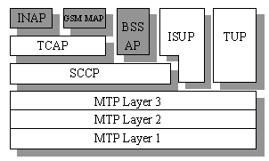 下圖圖示了SS7信令協(xié)議棧: