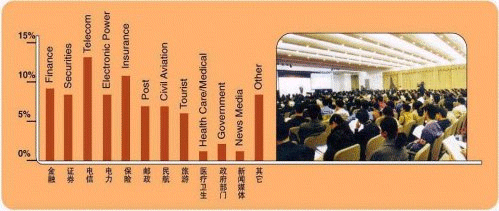 展會(huì)期間,我們將邀請(qǐng)近20,000名來(lái)自電信、保險(xiǎn)、銀行、證券、郵政、電力、民航、旅游、鐵路、物流、制造業(yè)、房地產(chǎn)、醫(yī)藥、政府部門(mén)及煙草等行業(yè)的專(zhuān)業(yè)觀眾前來(lái)參觀。