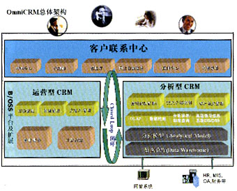 經(jīng)營分析型CRM: OmniVision是OmniCRM方案中經(jīng)營分析型CRM的核心,它采用數(shù)據(jù)倉庫、ETL、OLAP分析、靈活報表展現(xiàn)及數(shù)據(jù)挖掘等技術,結(jié)合電信業(yè)務的深厚經(jīng)驗,進行用戶分析、業(yè)務分析、收益分析、大客戶分析、營銷分析、競爭分析、服務質(zhì)量分析等主題分析。 客戶聯(lián)系中心: OmniContactCenter是OmniCRM方案中的客戶聯(lián)系中心,包括多媒體呼叫中心、網(wǎng)上用戶自服務系統(tǒng)(網(wǎng)上營業(yè)廳)、直郵傳真處理中心等。所有的市場活動都是由客戶聯(lián)系中心傳遞給客戶的,所有的客戶反饋和請求都是由這里反饋給分析系統(tǒng)的。 大客戶管理:OmniVIP OmniVIP是亞信公司結(jié)合深厚的行業(yè)知識,專門針對集團大客戶、商業(yè)大客戶、潛在大客戶等各類電信大客戶,從分析和運營兩個方面為各電信公司提供的完整而領先的大客戶管理方案,它能夠為運營商提供現(xiàn)有及潛在大客戶的全方位視圖,包括客戶行為、業(yè)務情況、商業(yè)獲利率、競爭情況等,挖掘潛在商機,使利潤最大化;能夠使運營商有效地降低成本;能夠使運營商為大客戶提供真正的個性化服務;能夠使運營商預測、吸引并發(fā)展?jié)撛诘拇罂蛻;能夠使運營商有效地管理大客戶服務人員,提高客戶的滿意度和忠誠度;能夠通過OmniContactCenter、代理商、營業(yè)廳、SMS、Email等全面的渠道管理,幫助電信運營商對大客戶進行“全員、全程、全方位”服務,從而全方位地為大客戶提供最完善優(yōu)質(zhì)的服務。 市場管理:OmniMarketing OmniMarketing根據(jù)分析系統(tǒng)得出的結(jié)論,產(chǎn)生相應的市場活動發(fā)送給運營型CRM部分執(zhí)行,同時將執(zhí)行結(jié)果和反饋收集回來進行比較、評價和進一步的分析,以期設計出更合理的資費和更貼切的業(yè)務給用戶。 銷售管理:OmniSFA 隨著競爭的加劇,運營商的銷售也將從傳統(tǒng)的柜臺坐等的經(jīng)營模式轉(zhuǎn)變成有針對性的主動出擊發(fā)展客戶的模式。銷售管理系統(tǒng)就是提供了針對銷售人員的銷售輔助工具,其中包括任務分配與下達、日程安排、客戶資料管理、銷售機會管理、銷售漏斗、報價管理、訂單合同管理、銷售業(yè)績考評和資金評定等模塊。 通過OmniSFA,銷售工作將按照科學化正規(guī)化流程化的方式來進行。 運作型和分析型CRM的互動循環(huán)