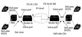 連接。每個辦公室有一個PBX內(nèi)部電話網(wǎng)絡(luò),通過一個E&M接口連接到語音網(wǎng)絡(luò)。 鹽湖城和San Jose 辦公室都使用E&M