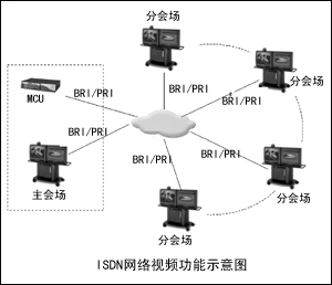 ISDN網(wǎng)絡(luò)連接:借助思科IP視頻會(huì)議系統(tǒng),目前廣泛使用的ISDN通信網(wǎng)可以與視頻終端ISDN PRI或BRI接口相連,通過撥號與任何一個(gè)會(huì)場進(jìn)行隨時(shí)隨地的連接。另外,采用ISDN線路還可以起到網(wǎng)絡(luò)備份和延伸的作用。ISDN線路的建設(shè)非常方便,各分會(huì)場可以從電信部門申請ISDN線路,并在1至2周內(nèi)完成線路到位。