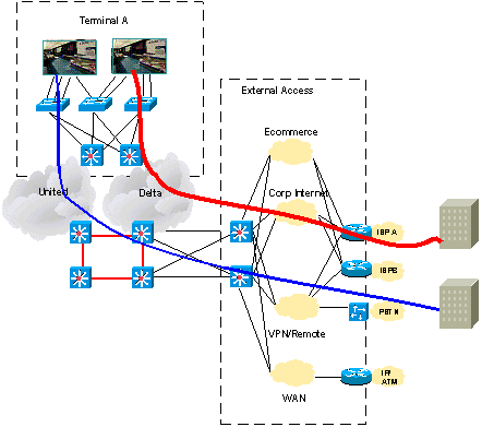 該機(jī)場(chǎng)還部署了大量從電信商到機(jī)場(chǎng)租戶的傳統(tǒng)T1 電信線路。 當(dāng)服務(wù)供應(yīng)商希望在機(jī)場(chǎng)內(nèi)外廣泛鋪設(shè)光纖來(lái)滿足客戶的需要時(shí),機(jī)場(chǎng)提供了SONET 環(huán)網(wǎng)來(lái)作為電信商的最后一英里電路。電信商現(xiàn)可在機(jī)場(chǎng)的兩個(gè)主要接入點(diǎn),通過(guò)機(jī)場(chǎng)的Cisco ONS15454 和 15327 來(lái)連接其所有客戶電路。