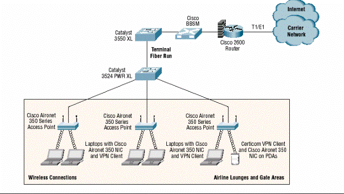 思科無(wú)線基礎(chǔ)設(shè)施可提供無(wú)線接入點(diǎn)、客戶接口系統(tǒng)以及監(jiān)控和管理系統(tǒng),以便為乘客提供無(wú)線互聯(lián)網(wǎng)接入,并為機(jī)場(chǎng)的員工和租戶提供無(wú)線機(jī)場(chǎng)連接。思科的無(wú)線機(jī)場(chǎng)架構(gòu)也支持無(wú)線VLAN,它特別地允許客運(yùn)站的單一接入點(diǎn)向多個(gè)客戶,包括航空公司、特許經(jīng)營(yíng)商和乘客提供安全服務(wù)。