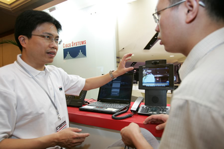 在思科統(tǒng)一通信里,另一項(xiàng)先進(jìn)的技術(shù)與工具也將在不久的未來(lái)與公眾零距離接觸——思科的“遠(yuǎn)程呈現(xiàn)”(Telepresence)解決方案,這一增強(qiáng)型的語(yǔ)音和視頻會(huì)議解決方案融合了視頻、語(yǔ)音以及數(shù)據(jù)傳輸功能。憑借其出色、穩(wěn)定的影音實(shí)時(shí)傳播效果,讓會(huì)議之中的其他參與者就像電影《星球大戰(zhàn)》中一樣,以真實(shí)的影像出現(xiàn)在通話(huà)者的面前,帶給用戶(hù)更具現(xiàn)場(chǎng)感的“面對(duì)面”交流體驗(yàn)。