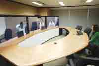 10月24日,在思科公司位于香港灣仔鷹君大廈的一間會議室,包括思科CEO錢伯斯在內(nèi)的六名高管已經(jīng)“坐”在橢圓型的會議桌一側(cè)!癏i!”隨著錢伯斯的一聲招呼,會議室內(nèi)的人這才發(fā)現(xiàn),正在講話的“錢伯斯”是在三塊連接起來的等離子屏幕上,而此刻他真實(shí)的位置是在思科位于美國硅谷的總部。65英寸的1080P高清晰屏幕上,錢伯斯等人的影像如真人大小,加上三塊屏幕被設(shè)計成會議桌的另外一半,讓人誤以為錢伯斯真的來到了香港。