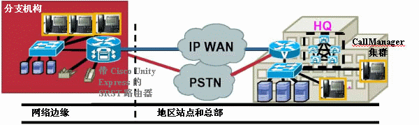 思科集成多業(yè)務(wù)平臺(tái)是企業(yè)分支機(jī)構(gòu)和商業(yè)機(jī)構(gòu)部署帶SRST的IP電話、用于故障恢復(fù)呼叫處理的基礎(chǔ)。在此部署中,語(yǔ)音留言和自動(dòng)接聽(tīng)服務(wù)可在思科集成多業(yè)務(wù)路由器中通過(guò)Cisco