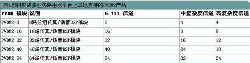 在任意思科集成多業(yè)務(wù)路由器平臺(tái)主板上使用任意思科PVDM2產(chǎn)品(PVDM2-8,PVDM2-16,PVDM2-24,PVDM2-32或PVDM2-64),可實(shí)現(xiàn)內(nèi)嵌模塊性,無(wú)需使用網(wǎng)絡(luò)模塊或AIM,即可提供會(huì)議、譯碼和話音端接。在思科集成多業(yè)務(wù)路由器中安裝思科PVDM2產(chǎn)品,可為IP話音流量和時(shí)分多路復(fù)用(TDM)流量提供這些服務(wù)。使用思科集成多業(yè)務(wù)路由器上本地安裝的VIC、VWIC或EVM(EVM僅在Cisco