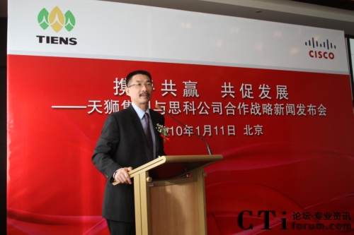 CTI論壇(ctiforum)1月12日消息(記者 張塵):2010年1月11日,北京——“攜手共贏 共促發(fā)展——天獅集團與思科公司戰(zhàn)略項目新聞發(fā)布會”在北京召開,雙方共同宣布,天獅集團國際健康產業(yè)園網絡平臺成功啟用,并正式達成合作戰(zhàn)略。天獅集團董事長兼總裁李金元先生與思科全球副總裁、思科中國副董事長兼總裁林正剛先生出席新聞發(fā)布會,并進行簽約儀式。通過本次強強聯(lián)合,思科面向服務的網絡架構(SONA)全面部署于天獅集團國際健康產業(yè)園,為天獅集團業(yè)務的穩(wěn)定持續(xù)發(fā)展以及信息化水平的進一步提升提供了可靠保證,同時也為雙方未來更深層次的合作打下了堅實的基礎。