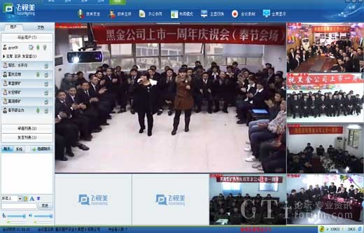 首先,飛視美為總部及5個辦事處分別安裝了飛視美視頻會議軟件,將慶典場地劃分為1個主會場和5個分會場,總部與分支機構(gòu)的員工都在當?shù)貐⒓討c典,通過飛視美進行在線演講與總結(jié)、相互問候、相互祝福、表演節(jié)目、進行互動游戲等,這是一種“高科技互動”。其次,為了達到更好的視頻溝通效果,飛視美為黑金實業(yè)量身定制了一套硬件設備方案。根據(jù)各會場的面積、參與人數(shù)等情況,提供了一整套硬件參考:包括攝像設備、音響設備、功效設備等,并派出技術團隊專門赴重慶為客戶進行設備搭建和調(diào)試,保障了此次慶典的最佳效果。