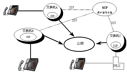 智能網(wǎng)(IN-IntelLigent Network)是在原有通訊網(wǎng)的基礎(chǔ)上為用戶提供新業(yè)務(wù)而設(shè)置的附加網(wǎng)絡(luò)結(jié)構(gòu),它的最大特點是將網(wǎng)絡(luò)的交換功能與控制功能分開。把電話網(wǎng)中原來位于各個端局交換機中的網(wǎng)絡(luò)功能集中到智能網(wǎng)中的業(yè)務(wù)控制點,而原有的交換機僅完成基本的接續(xù)功能,當增加或修改新業(yè)務(wù)時,只在業(yè)務(wù)控制點(SCP)增加或修改新業(yè)務(wù)邏輯,并在數(shù)據(jù)庫中增加新的業(yè)務(wù)數(shù)據(jù)和客戶數(shù)據(jù),而不必修改各交換機的硬件和軟件。