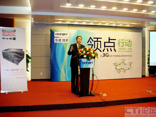 作為“領(lǐng)點行動”巡展的第一站,此次會議得到業(yè)內(nèi)人士的廣泛關(guān)注,偌大會議現(xiàn)場座無虛席,會議吸引了CTI行業(yè)資深觀察家、產(chǎn)業(yè)鏈合作廠商、企業(yè)精英及專業(yè)人士參加。東進技術(shù)總裁賀建楠就新3G環(huán)境下增值業(yè)務(wù)的機遇和挑戰(zhàn)與到會人員進行了互動交流,其中“抓住4萬億機遇,替客戶省錢,幫客戶賺錢”,“聽政府話,跟黨走,按既定方針辦”等精彩亮點,在笑聲中引發(fā)參會嘉賓的一致認(rèn)同和思考,并被反復(fù)引用。