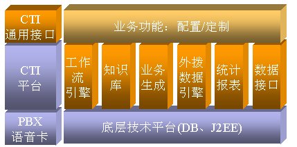 客戶(hù)服務(wù)系統(tǒng)由接入平臺(tái)和應(yīng)用軟件兩部分組成。接入平臺(tái)包括硬件接入設(shè)備,CTI中間件;應(yīng)用軟件實(shí)現(xiàn)咨詢(xún)、查詢(xún)、業(yè)務(wù)受理、投訴、故障申告及外呼服務(wù)等功能。