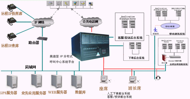 物流是商業(yè)發(fā)達(dá)社會(huì)必然高速度發(fā)展的產(chǎn)業(yè)之一,不僅僅要求物品從供應(yīng)地向接收地的實(shí)體流動(dòng)過(guò)程,同時(shí)也是信息流和資金流的過(guò)程,根據(jù)實(shí)際不同的需要,需要運(yùn)輸、儲(chǔ)存、裝卸、搬運(yùn)、包裝、流通加工、配送、信息處理等基本過(guò)程有機(jī)結(jié)合,從而完成用最短的時(shí)間合理將物品運(yùn)向目的地。在整個(gè)物流過(guò)程中,涉及到的各個(gè)環(huán)節(jié),分散在不同的區(qū)域,需要一個(gè)信息平臺(tái)將整個(gè)物流環(huán)節(jié)聯(lián)接起來(lái),及時(shí)把握客戶的定貨需求,進(jìn)行車輛的調(diào)度管理,庫(kù)存管理以及票據(jù)管理等,力求實(shí)現(xiàn)用最少的庫(kù)存,最短的運(yùn)輸距離滿足客戶的需求,F(xiàn)代物流企業(yè)與以往的物流企業(yè)不同,不僅僅局限于物流中的某一個(gè)環(huán)節(jié),而是普遍采用了信息化管理技術(shù),如ERP、物流管理(LM)、SCM等應(yīng)用系統(tǒng),并通過(guò)Internet將遍布在各地的物流中心與客戶連接起來(lái),形成一個(gè)高效率的物流配送網(wǎng)絡(luò)。建立在奧迪堅(jiān)IPDCC的分布式呼叫中心平臺(tái)上的光大科技物流客戶服務(wù)系統(tǒng),以IP技術(shù)為核心在網(wǎng)絡(luò)上構(gòu)建一個(gè)語(yǔ)音和數(shù)據(jù)的統(tǒng)一平臺(tái),在一臺(tái)服務(wù)器上融合了CTI、PBX、ACD、VoIP、Voice、Mail,Recording,Call