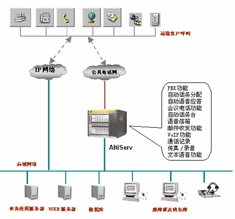 5. 話務(wù)自動(dòng)分配ACD功能:對撥入系統(tǒng)內(nèi)部的電話,可以選用撥入電話自動(dòng)分配到員工的話機(jī)上,如對同一個(gè)業(yè)務(wù)功能相同的部門, AltiWare 會使用以下選項(xiàng)分配電話給座席:呼叫首位空閑成員,自動(dòng)話務(wù)分配,呼叫最空閑成員、呼叫所有成員、最少應(yīng)答次數(shù)成員、平均最少應(yīng)答時(shí)間成員和平均最長空閑成員。通過第三方編程以后您還可以實(shí)現(xiàn)更復(fù)雜的自動(dòng)話務(wù)分配功能等等。