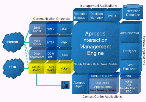 作為全球領(lǐng)先的CTI產(chǎn)品,Apropos可以管理所有類型的客戶交互,包括電話、傳真、E-Mail、Web Request、Web Chat、SMS(短消息)、VoiceMail、OutBound、VoIP等, 能實(shí)時(shí)看到客戶的所有渠道的交互信息,并能提供諸多詳細(xì)信息,包括主叫號(hào)碼、被叫號(hào)碼、發(fā)起人信息、聯(lián)系原因、目前狀態(tài)、解決方法以及待解決的任務(wù)等,并可記錄客戶消費(fèi)行為方式,以便能實(shí)時(shí)訪問與客戶每次交互相關(guān)的所有歷史記錄。