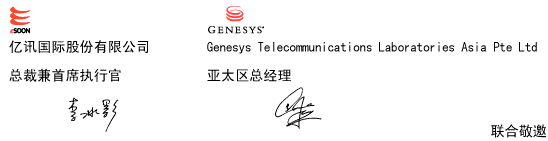 屆時(shí),不僅有Genesys全球總裁率領(lǐng)資深專家向您介紹客戶關(guān)系管理領(lǐng)域的市場(chǎng)動(dòng)向與未來(lái)趨勢(shì),還帶來(lái)了全球拭目以待、發(fā)熱發(fā)光的Genesys最新產(chǎn)品 ── G7。此外主辦單位更有幸請(qǐng)來(lái)兩岸三地知名客戶,提供商務(wù)應(yīng)用實(shí)例,共同分享其成功經(jīng)驗(yàn),為您的企業(yè)及同行業(yè)提供了相互交流的機(jī)會(huì)。