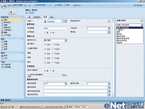 Dynamics CRM 4.0的聯(lián)絡(luò)人,除了基本信息之外,還可以針對偏好的聯(lián)絡(luò)方式、活動(dòng)記錄、次要聯(lián)絡(luò)人或者商機(jī)管理等,儲(chǔ)存更詳細(xì)的記錄。