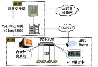 用戶端VoIP接入設(shè)備:可采用模擬VoIP網(wǎng)關(guān)、模擬VoIP語音卡加PC等方式。