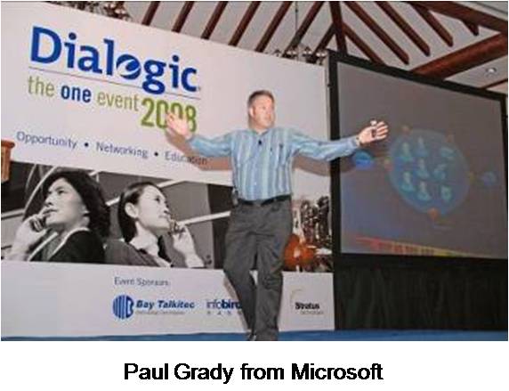 第二天上午,會(huì)議以Dialogic總裁兼CEO Nick Jensen強(qiáng)有力的演講開(kāi)始,隨后是Dialogic執(zhí)行副總裁兼COO Tim Murray和Dialogic市場(chǎng)高級(jí)副總裁Jim Machi。 面向整個(gè)宴會(huì)廳的與會(huì)者,全天的會(huì)議包括了來(lái)自Dialogic產(chǎn)品線總監(jiān)James Rafferty和Dialogic企業(yè)產(chǎn)品線市場(chǎng)經(jīng)理Bud Walder等內(nèi)部演講者,和來(lái)自Yankee Group, PT. Excelcomindo Pratama 和Microsoft等外部演講者們激動(dòng)人心的演講。會(huì)議結(jié)束時(shí),由我們的合作伙伴Bay Talkitec贊助,有三個(gè)幸運(yùn)贏家贏得了iPod touch 16G,iPod nano 8G和4G。