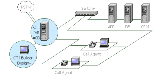 。。CTI Builder本身是一個軟交換機,具有普通程控交換機的功能,如:分機切轉、外線呼入、內線呼出、轉接電話、代接電話等等,同時還具有一些高級功能如:語音信箱、排隊機、內線組呼叫、高級選線等功能。也就是說,系統(tǒng)已經(jīng)提供了呼叫中心通用的功能,用戶只需要定義自己的業(yè)務而不必關心呼叫中心的內部交換。