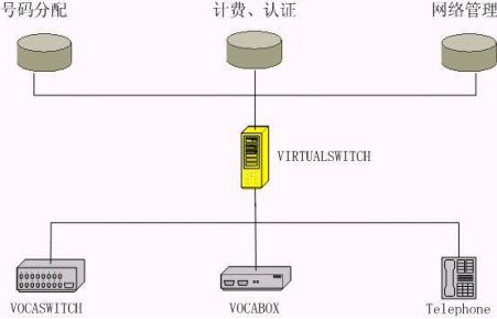 Virtual Switch 虛擬交換系統(tǒng)負責管理VOIP交換機(VOCASWITCH)、IP終端設備(VOCABOX,LANPHONE),提供和傳統(tǒng)電話業(yè)務相當?shù)、基于IP的集中呼叫控制。