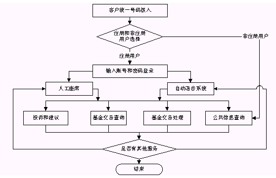 基金客戶服務(wù)呼叫中心系統(tǒng)的總體目標(biāo)是建立一個(gè)統(tǒng)一面向投資者的多媒體呼叫中心平臺(tái),通過(guò)統(tǒng)一的特服號(hào)接入,實(shí)現(xiàn)統(tǒng)一的用戶服務(wù)界面,統(tǒng)一的熱線功能和統(tǒng)一的基金業(yè)務(wù)標(biāo)準(zhǔn),集中受理投資者對(duì)基金業(yè)務(wù)的需求,為投資者提供基金綜合性服務(wù)的無(wú)形窗口。系統(tǒng)以基金綜合業(yè)務(wù)系統(tǒng)為支撐,實(shí)現(xiàn)數(shù)據(jù)共享,完成業(yè)務(wù)咨詢、業(yè)務(wù)受理、業(yè)務(wù)查詢和客戶投訴等四大功能的一體化的處理與管理。
