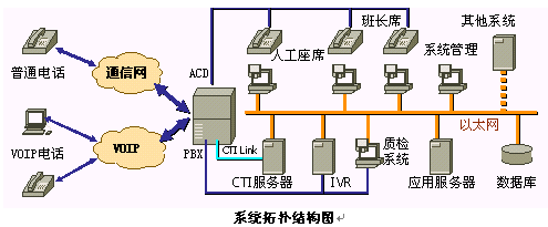 交換機(jī)實(shí)現(xiàn)電話呼入、呼出和話務(wù)管理等功能;提供自動(dòng)排隊(duì)機(jī)系統(tǒng),用于實(shí)現(xiàn)對(duì)來(lái)話的均衡分配;呼叫管理系統(tǒng),用于有效管理所有話務(wù);支持IVR;提供CTI Link模塊作為計(jì)算機(jī)/電話集成接口。