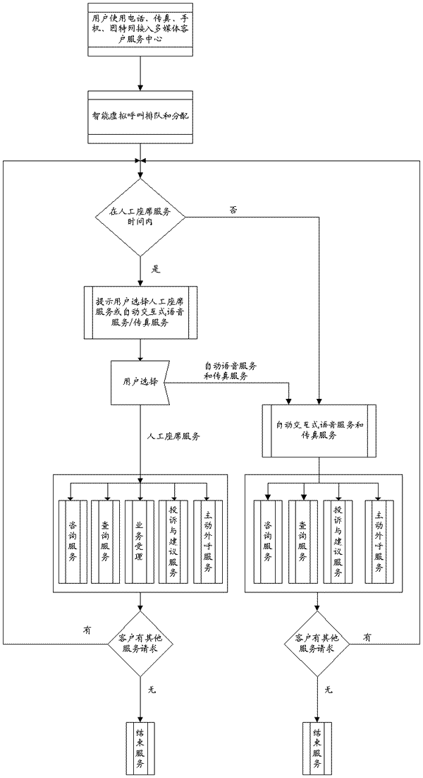 接入子模塊屏蔽了外部接入的不同終端方式,實現多種接入方式的統一排隊,由以前的ACD概念走向了AXD(虛擬排隊機)概念,將用戶的請求以標準的格式交由業(yè)務處理子系統進行處理。