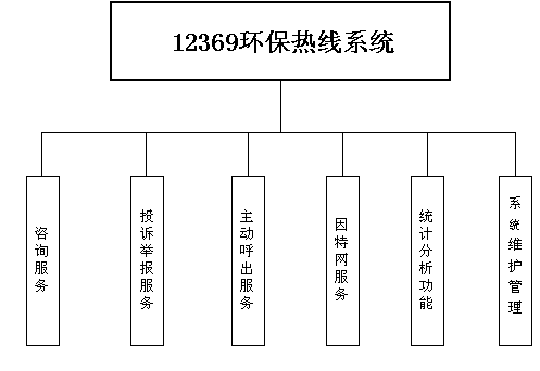 人民群眾利用電話、傳真、電子郵件、因特網(wǎng)、手機(jī)、短消息等撥打國家環(huán)保總局規(guī)定的統(tǒng)一特服號(hào)碼(12369)進(jìn)入12369環(huán)保熱線系統(tǒng),本系統(tǒng)依托環(huán)保局各類業(yè)務(wù)技術(shù)支持系統(tǒng)和網(wǎng)絡(luò)系統(tǒng),通過人工受理或自動(dòng)語音服務(wù)等方式全天24小時(shí)不間斷地為客戶提供各種服務(wù)。
