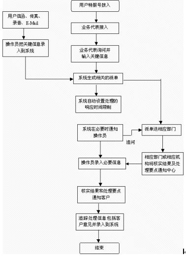 •   外線撥入系統(tǒng)后,如果選擇自動(dòng)受理,系統(tǒng)通過交互式語音應(yīng)答方式,引導(dǎo)用戶完成投訴過程。系統(tǒng)實(shí)時(shí)記錄與處理投訴的全部對(duì)話過程。