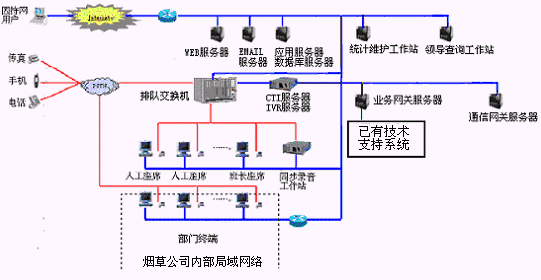 基于排隊交換機的煙草公司呼叫中心網(wǎng)絡(luò)拓撲結(jié)構(gòu)圖