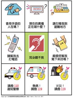 在日外國人和聾啞人將免費提供15種語言版本“SOS卡片”