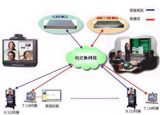 DSS系統(tǒng)可以和任何符合H.320/H.323標(biāo)準(zhǔn)的MCU配合,實(shí)現(xiàn)會(huì)議電視系統(tǒng)中的數(shù)據(jù)功能。