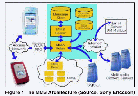 本概述提供了有關(guān)MMS標(biāo)準(zhǔn)的簡要介紹,主要針對(duì)視頻內(nèi)容交換方面的內(nèi)容。基本的MMS網(wǎng)絡(luò)架構(gòu)如圖 1。