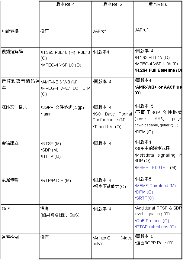 - 3GPP PSS隨著內(nèi)在的向后兼容性,從簡(jiǎn)單的流式媒體服務(wù)規(guī)范(版本Rel 4)發(fā)展到更先進(jìn)一代的服務(wù)規(guī)范(版本Rel 6)。