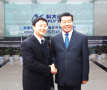 12月19日上午,中共中央政治局常委、全國政協(xié)主席賈慶林一行在安徽省委書記郭金龍、省長王金山等省市領(lǐng)導(dǎo)陪同下來到國家863計(jì)劃成果產(chǎn)業(yè)化基地——科大訊飛公司視察,賈慶林主席對科大訊飛在中文語音技術(shù)和產(chǎn)業(yè)化方面的成績給予充分肯定。上午8時(shí)30分,賈主席一行抵達(dá)訊飛語音產(chǎn)業(yè)大樓。中國科技大學(xué)黨委書記郭傳杰、科大訊飛總裁劉慶峰博士、基地總工陳濤及基地工作人員熱烈歡迎賈主席的到來。