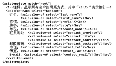 XSL采用結(jié)構(gòu)化描述。XSL遵循XML語法規(guī)范,結(jié)構(gòu)性、可讀性較強(qiáng)。經(jīng)過短時(shí)間學(xué)習(xí),渠道增值伙伴乃至用戶就可以掌握XSL描述要領(lǐng),改寫或新建XSL模板,例如定制客戶化的報(bào)表。