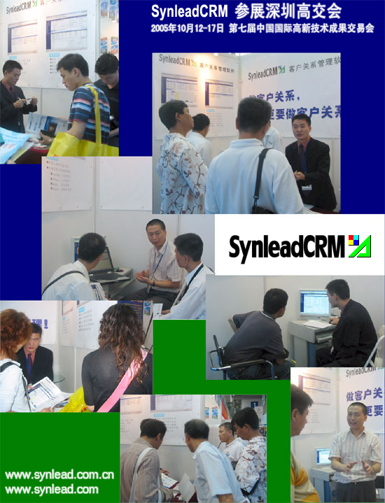 2005年10月12-17日,深圳,SynleadCRM客戶關(guān)系管理系統(tǒng)參展第七屆中國國際高新技術(shù)成果交易會(簡稱高交會)。