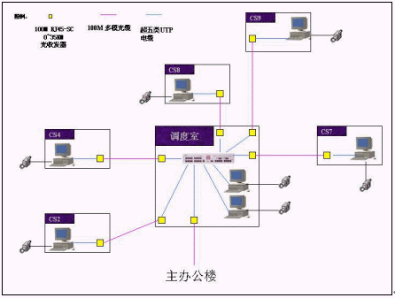 下例示圖是本產(chǎn)品的應用實例。示圖中CS**和調(diào)度室均為現(xiàn)場操作人員工作的控制室。通過調(diào)度室同廠辦公樓實現(xiàn)網(wǎng)絡之間的互聯(lián)。每一臺信號處理服務器帶4到8個攝像頭,主辦公樓內(nèi)在現(xiàn)有的計算機上安裝了本公司的遠程監(jiān)視軟件,實現(xiàn)了管理人員及廠領導的遠程監(jiān)視的功能。
