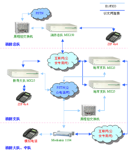 省總隊(duì)與各支隊(duì)、大隊(duì)、中隊(duì)之間電話聯(lián)系非常多,每年都會(huì)產(chǎn)生巨額的電話通話費(fèi)用。如何在不影響內(nèi)部電話溝通、不影響工作效率、不改變原有使用方式的前提下,有效地控制電話資費(fèi),降低通信成本,是本次消防VOIP系統(tǒng)建設(shè)的基本目標(biāo)。