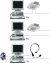 在如何為一個(gè)用戶提供電話服務(wù)上,你可以有多種選擇。通過(guò)使用一個(gè)內(nèi)置交換功能的標(biāo)準(zhǔn)IP電話,這時(shí)你只需單一的一條以太網(wǎng)線接到桌面與IP電話相連,而PC可連接到IP電話的另一網(wǎng)口。如果你已經(jīng)有兩條以太網(wǎng)線接到桌面,你可以一根接電話,另一根接PC。