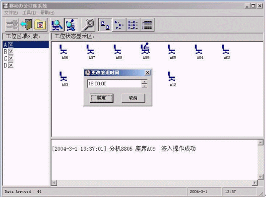 移動(dòng)辦公訂席系統(tǒng)操作臺的操作主要包括簽入、簽退、改變簽退時(shí)間三個(gè)方面: