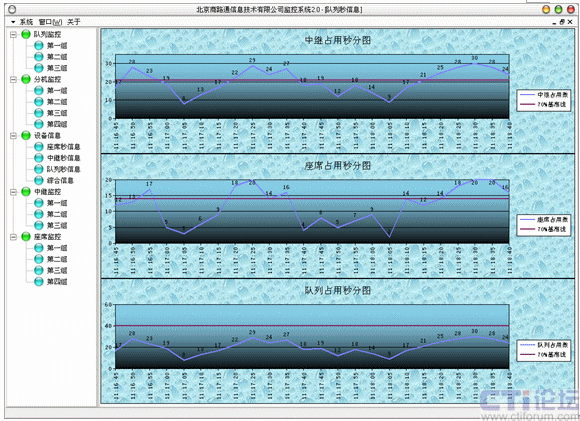 如圖2所示,管理員可以實時掌握當前中繼占用數(shù)、坐席占用數(shù)、隊列占用數(shù),這樣可以非常容易知道當前的來電情況。
