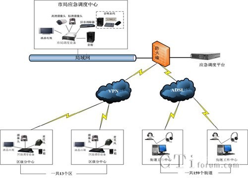 武漢市司法局視頻會(huì)議系統(tǒng)包括了1個(gè)主會(huì)場(chǎng)高清、13個(gè)區(qū)局分會(huì)場(chǎng)標(biāo)清和159個(gè)街道軟件視頻會(huì)議點(diǎn)。系統(tǒng)傳輸依托于武漢市司法局業(yè)務(wù)網(wǎng),網(wǎng)絡(luò)呈星型拓?fù)浣Y(jié)構(gòu),中心節(jié)點(diǎn)到各區(qū)局節(jié)點(diǎn)網(wǎng)絡(luò)帶寬為2M,中心節(jié)點(diǎn)到各街道所網(wǎng)絡(luò)為VPN方式通過(guò)ADSL撥號(hào)連接,全面支持全高清視頻會(huì)議,實(shí)現(xiàn)高清、標(biāo)清、硬件、軟件混合組網(wǎng)模式。整個(gè)系統(tǒng)基于業(yè)界最先進(jìn)的H.264 High Profile視頻協(xié)議和寬頻語(yǔ)音,最大還原審訊現(xiàn)場(chǎng)真實(shí)場(chǎng)景。同時(shí)系統(tǒng)還具備音視頻同步錄像、畫(huà)中畫(huà)疊加錄像、多策略光盤(pán)實(shí)時(shí)備份、本地訊問(wèn)、遠(yuǎn)程指揮等功能,完美實(shí)現(xiàn)了審訊工作的數(shù)字化、標(biāo)準(zhǔn)化和網(wǎng)絡(luò)化建設(shè),有效地提高了偵查辦案、協(xié)查辦案的效率,加強(qiáng)了辦案、取證過(guò)程的真實(shí)性和有效性,增強(qiáng)審訊過(guò)程的監(jiān)督與檢查取證,維護(hù)司法公正。