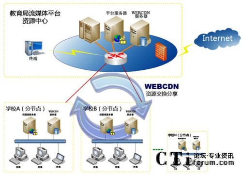 圖:VIEWGOOD WEBCDN流媒體多節(jié)點(diǎn)綜合管理應(yīng)用平臺教育解決方案應(yīng)用拓?fù)鋱D