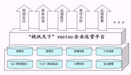 "視訊天下"VNETOO運(yùn)營平臺就是應(yīng)用了新一代完美網(wǎng)絡(luò)視頻會(huì)議技術(shù)的典范,它具有優(yōu)質(zhì)的音視頻效果和強(qiáng)大的數(shù)據(jù)功能,是集"視頻+語音+數(shù)據(jù)+IM(即時(shí)通信)+VOIP(網(wǎng)絡(luò)電話)+計(jì)費(fèi)系統(tǒng)+后臺管理"的基于IP網(wǎng)絡(luò)世界一流視訊服務(wù)提供平臺,它革命性地開創(chuàng)了視訊運(yùn)營領(lǐng)域的全新模式。