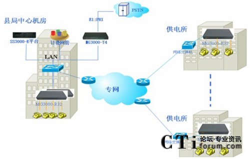10個(gè)供電所部署MG3000-R32接入網(wǎng)關(guān),每個(gè)供電所提供1臺設(shè)備,支持32部電話接入。
