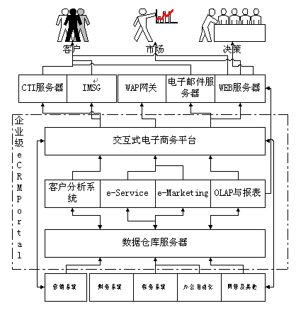 從易虹eCRM解決方案可以看出,易虹eCRM系統(tǒng)是一個端到端的解決方案。為客戶提供了,從信息的搜集、整理、客戶的分析與市場機(jī)會發(fā)現(xiàn)到抓住市場機(jī)會的客戶交互過程的全套的解決方案。