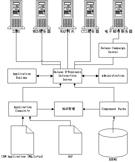 訪問層:訪問層包含Delano Campaign Server和Delano e-Business Interaction Suite。通過訪問層,利用現(xiàn)有的電子渠道與客戶交流,完成企業(yè)所制定的客戶關照流程。